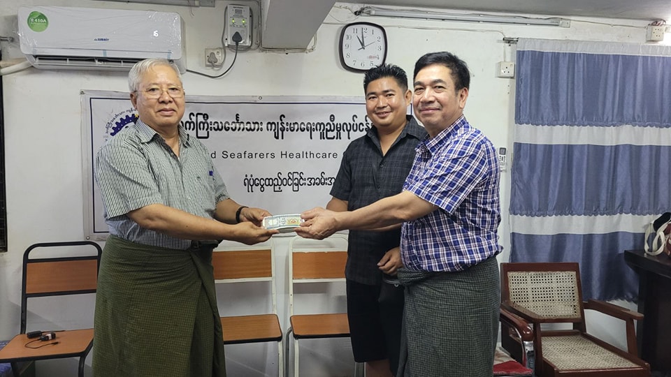 သက်ကြီးသင်္ဘောသားကျန်းမာရေးကူညီမှုလုပ်ငန်းကော်မတီ ရန်ပုံငွေအတွက် MTM Shipping Co., Ltd (MV.AMBER LAGOON) မှ Capt. Hla Kyaw