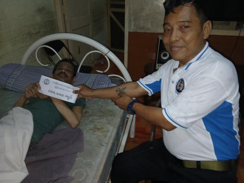 ASHC မှ လစဉ်ထောက်ပံ့ပေးနေရသော ဦးနှောက်သွေးခဲ၍ လေဖြတ်နေသည့် ဝေဒနာရှင်အား