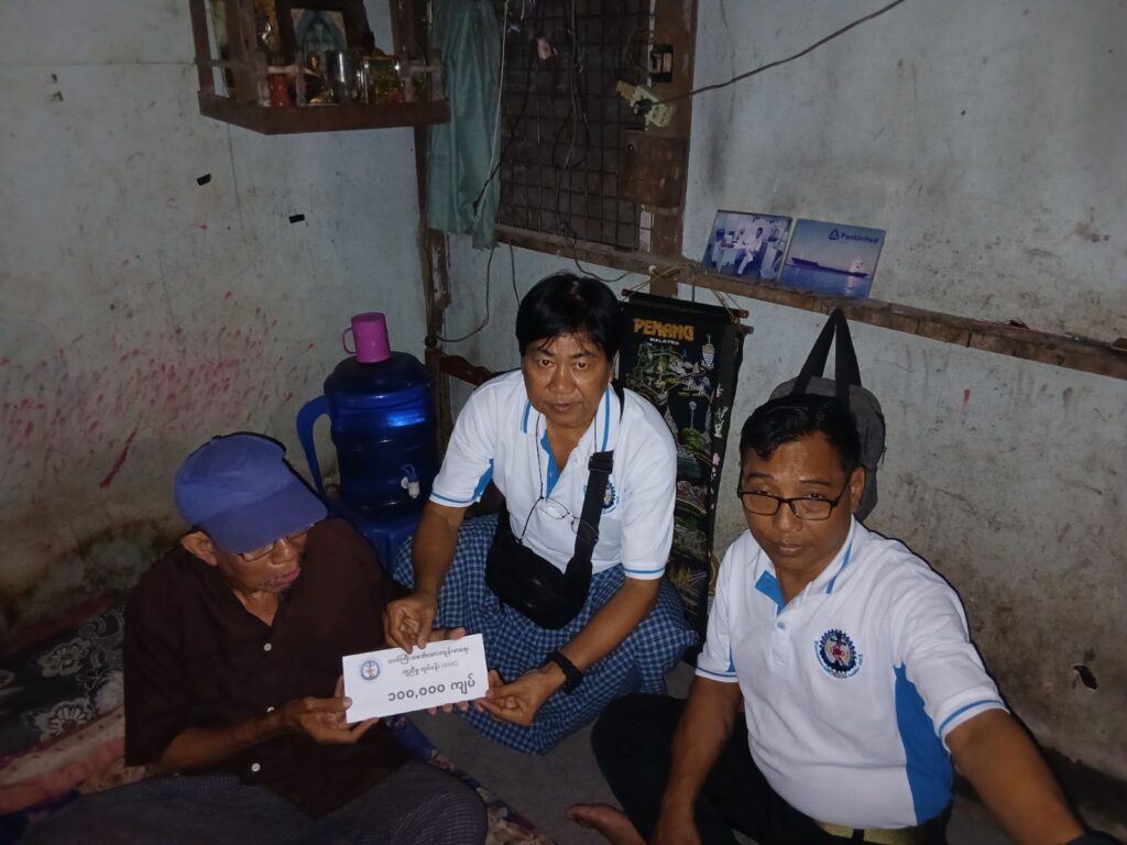 လေဖြတ်ထားသောကြောင့် ကျန်းမာရေးချို့တဲ့နေပြီး ငွေကြေးခက်ခဲနေသော သင်္ဘောသား ဟောင်းကြီး Oiler ဦး အောင်ကြီး (CDC-22087) အသက် 66နှစ်အား သက်ကြီးသင်္ဘောသားကျန်းမာရေးကူညီမှုလုပ်ငန်းကော်မတီ – ASHC မှ အဌမ အကြိမ် ထောက်ပံ့ အလှူငွေ တစ်သိန်းကျပ် လှူဒါန်းခဲ့ပါသည်ဦးအောင်ကြီးသည် ၁ရပ်ကွက်၊ရာဇသင်္ကြန်လမ်း၊အရှေ့ဒဂုံမြို့နယ်၊ရန်ကုန်တွင် အဆောင်ငှားနေရသူဖြစ်ပြီးကျန်းမာရေးချို့တဲ့နေကာ ငွေကြေးခက်ခဲနေပါသဖြင့် အကူအညီလိုအပ်လျက်ရှိနေသောကြောင့် ASHC မှ လစဥ်ထောက်ပံ့ကြေးပေးနေရသူဖြစ်ပါသည်အသင်းအနေဖြင့် ဦအောင်ကြီးအား(18.07.2024)ရက်နေ့တွင် ပထမအကြိမ် တစ်သိန်းကျပ်(04.12.2024)ရက်နေ့တွင် ဒုတိယအကြိမ် တစ်သိန်းကျပ်(24.03.2025) ရက်နေ့တွင် တတိယအကြိမ် တစ်သိန်းကျပ်(07.06.2025) ရက်နေ့တွင်စတုတ္ထအကြိမ် တစ်သိန်းကျပ် (09.07.2025) ရက်နေ့တွင် ပဥ္စမအကြိမ်တစ်သိန်းကျပ် (17.08.2025) ရက်နေ့တွင် ဆဌမအကြိမ် တစ်သိန်းကျပ်(03.09.2025) ရက်နေ့တွင် သတ္တမအကြိမ် တစ်သိန်းကျပ်ယခု(12.10.2025) ရက်နေ့တွင် အဌမအကြိမ် တစ်သိန်းကျပ်စုစုပေါင်း ရှစ်သိန်းကျပ် တိတိကို သွားရောက်ကူညီ လှူဒါန်းပြီးဖြစ်ပါသည်။အလှူရှင်များ အနေဖြင့် သာဓုအနုမောဓနာ ခေါ်ဆိုနိုင်ကြပါစေ။ စိတ်ချမ်းသာ ကိုယ်ကျန်းမာ ကောင်းကျိုးလိုရာ ဆန္ဒများ ပြည့်ဝကြပြီး ကပ်ကြီး သုံးပါးမှ လွှတ်ကင်းနိုင်ကြပါစေ။ ဒီထက်မကလဲ ပိုမိုလှူဒါန်းနိုင်ကြပါစေ။🙏🙏🙏ညီနောင်အပေါင်းတို့ ပေးလှူလာသော အလှူတော်ဒါနများကို လက်ရှိကျန်းမာရေးအတွက် အထူးအကူညီလိုအပ်နေသော သင်္ဘောသားကြီး/ငယ် များလက်ဝယ်သို့ ဆိုက်ဆိုက် မြိုက်မြိုက်ရောက်ရှိအောင် သက်ကြီး ကျန်းမာရေးကူညီမှု လုပ်ငန်းကော်မတီမှ ကိုယ်တိုင်ကိုယ်ကျ သွားရောက် လှူဒါန်းပေးလျှက်ရှိပါသည်။ ရှေ့ဆက်လဲ အစွမ်းကုန် ကြိုးစားပေးကြပါမည်။ဆက်သွယ်လှုဒါန်းလို၍ဖြစ်စေ၊ အကူညီတောင်းခံလို၍ဖြစ်စေ အောက်ပါလိပ်စာနဲ့ ဖုန်းနံပါတ်ကို ဆက်သွယ်နိုင်ပါသည် ရုံးခန်းလိပ်စာ – အမှတ်-70 ပထမထပ်၊ ရေကျော်လမ်းမ၊ ပုဇွန်တောင်မြို့နယ်၊ ရန်ကုန်။ဖုန်းနံပါတ် – 09793796486 (Office)095112325 (Hotline)Website page ဖြစ်တဲ့ https://ashcmm.org တွင်လည်း ၀င်ရောက်ကြည့်ရှုနိုင်ပါတယ်ခင်ဗျာASHC20th October 2025